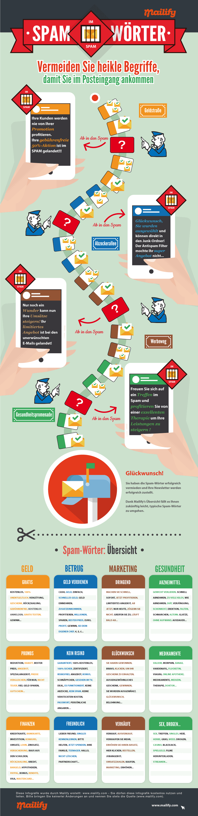 Nach wie vor sind Newsletter und E-Mail Marketing ein wichtiges Kommunikations-Instrument. Nicht zuletzt, weil die Nachrichten responsive und personalisierbar an die Empfänger geschickt werden. Der Kanal E-Mail bleibt weiterhin ein sehr erfolgreicher Kommunikations-Kanal und ist aus keinem Marketing-Mix wegzudenken. E-Mail ist mehr denn je ein beliebtes und vielfach eingesetztes Medium. Gerade deshalb, möchten wir auf das Problem „Spam“ hinweisen und zeitgleich ein paar Tipps geben, wie welche Spam-Begriffe Sie vermeiden müssen, damit Ihre E-Mails nicht im Spam-Ordner der Empfänger landen.
